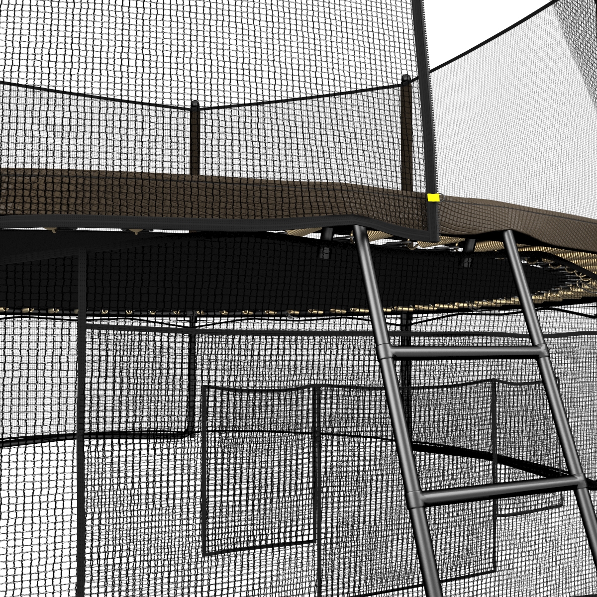 Данную серию батутов отличает двойная порошковая окраска опор батута, улучшенная система креплений стоек защитной сети батута STRONG FIX, а также благородное сочетание глубокого коричневого цвета защитного мата и стоек батута с матовым черным цветом опор. Благодаря такому цветовому решению, спортивный снаряд гармонично впишется в ландшафт загородного участка.