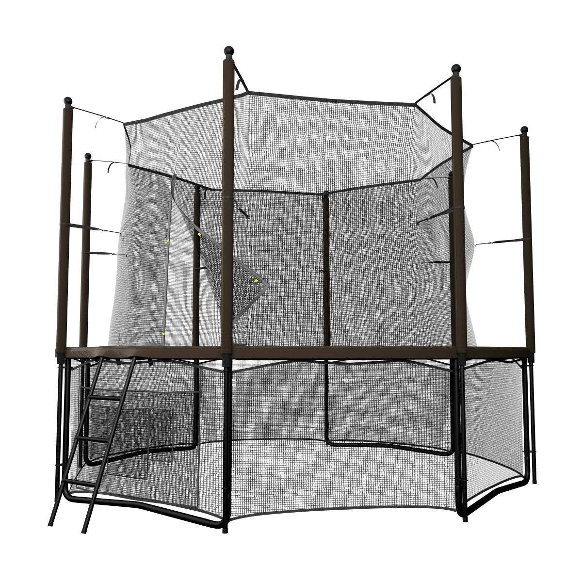 Данную серию батутов отличает двойная порошковая окраска опор батута, улучшенная система креплений стоек защитной сети батута STRONG FIX, а также благородное сочетание глубокого коричневого цвета защитного мата и стоек батута с матовым черным цветом опор. Благодаря такому цветовому решению, спортивный снаряд гармонично впишется в ландшафт загородного участка.