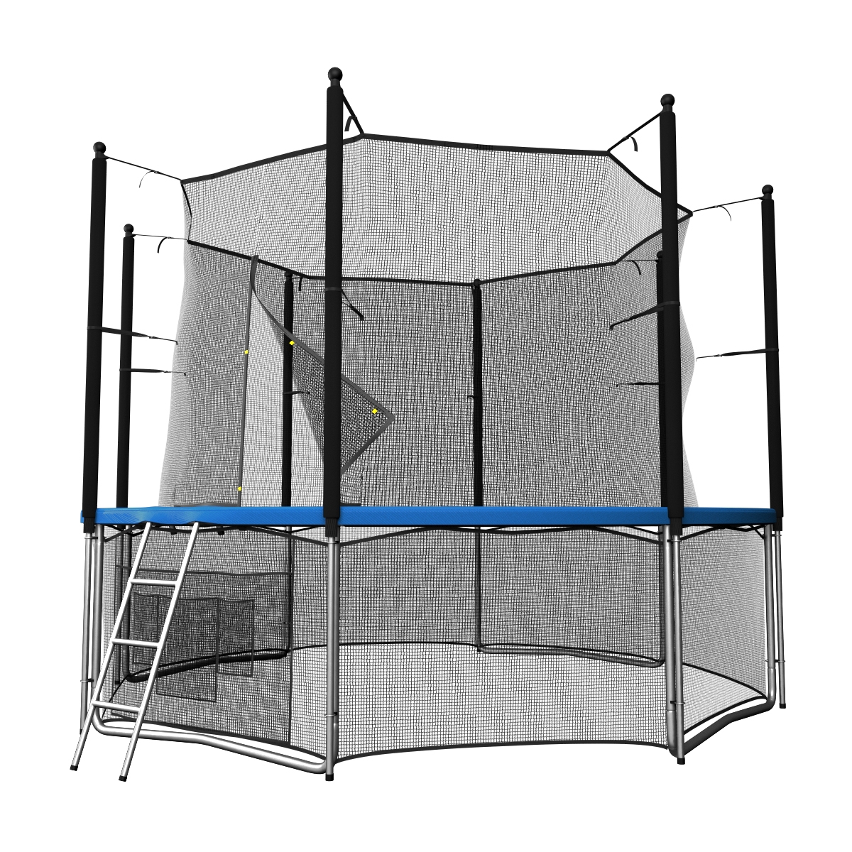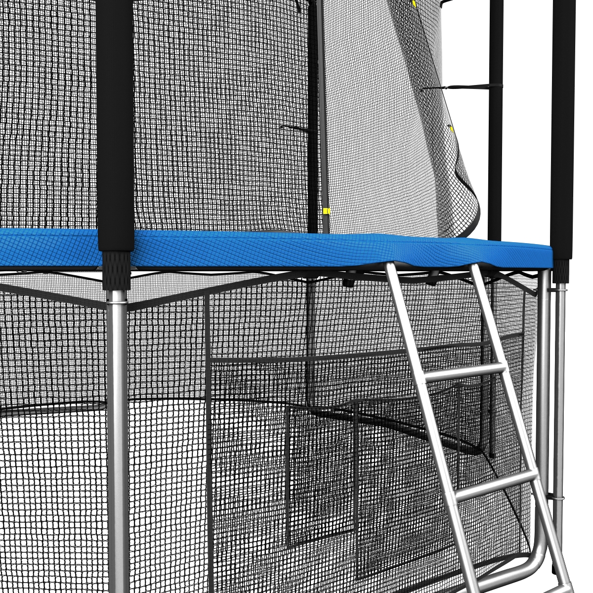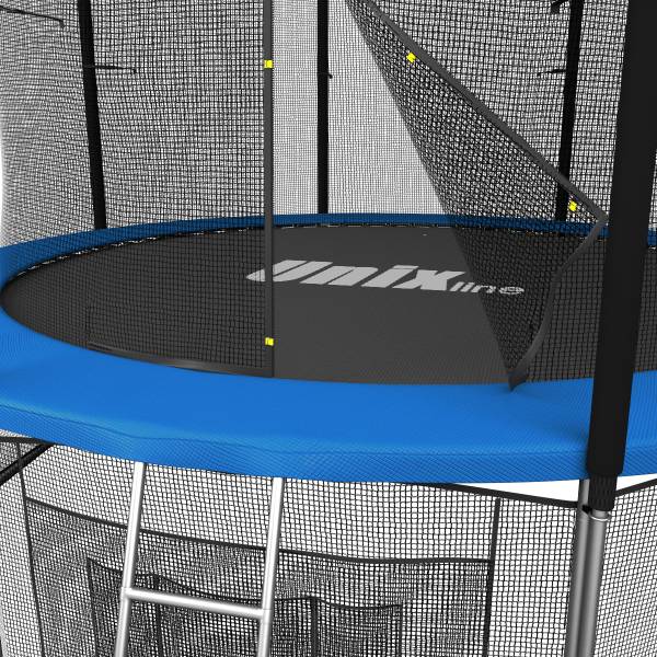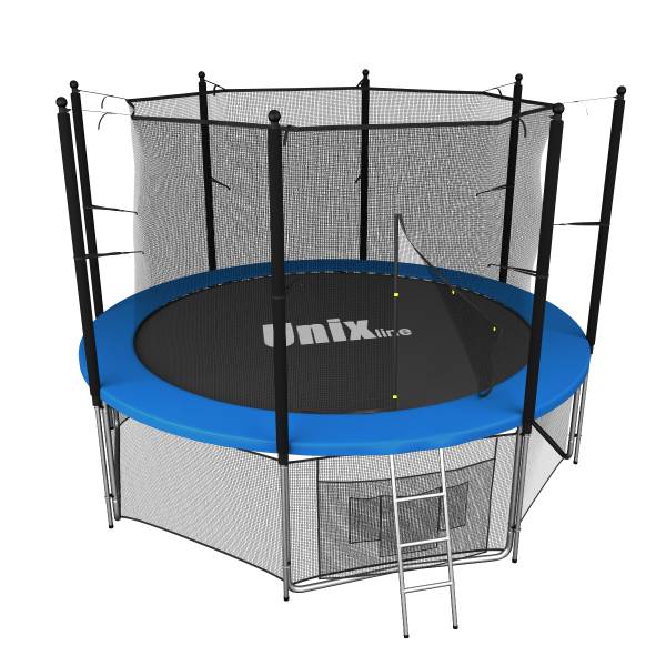 Помимо верхней защитной сетки, все батуты модельного ряда UNIX line оборудованы нижней защитной сеткой, которая препятствует проникновению под прыжковое полотно батута детей, животных, а так же попаданию посторонних предметов, и лестницей для удобства пользования. А в моделях диаметром от 10FT (305см.), в комплект входят специальные крепления батута к земле (колышки).