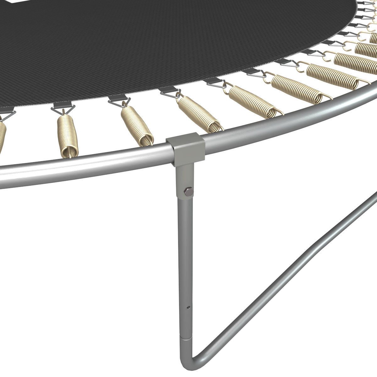 Металлический каркас батутов выполнен из особо прочной гальванизированной стали с использованием новейшей системы креплений деталей рамы батута «T-Conneсtor» (толщина стали 2.2 мм), что обеспечивает высокую надежность рамы и уровень безопасности пользователя, максимально допустимый вес которого, в зависимости от модели (размера), может достигать 160 кг. Гарантия на раму 2 года!!!