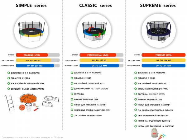 Гарантия на батуты серии Simple составляет 2 года.