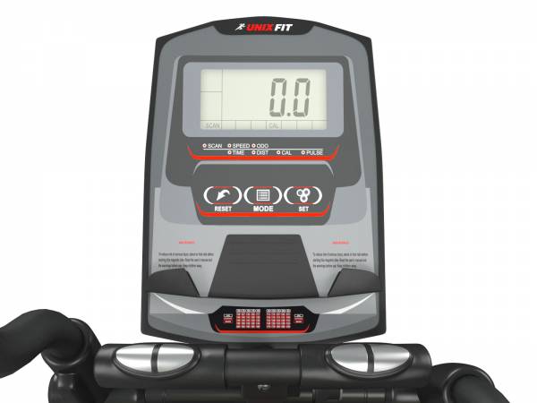 Информативный дисплей отображает показатели времени тренировки, расхода калорий, пульса, преодоленного расстояния и скорости. Также, дисплей оснащен подставкой для планшета/смартфона.