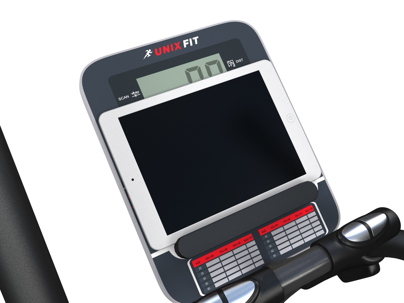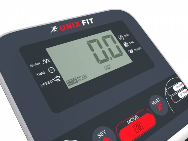 Информативный дисплей отображает показатели времени тренировки, расхода калорий, пульса, преодоленного расстояния и скорости. Также, дисплей оснащен подставкой для планшета/смартфона.