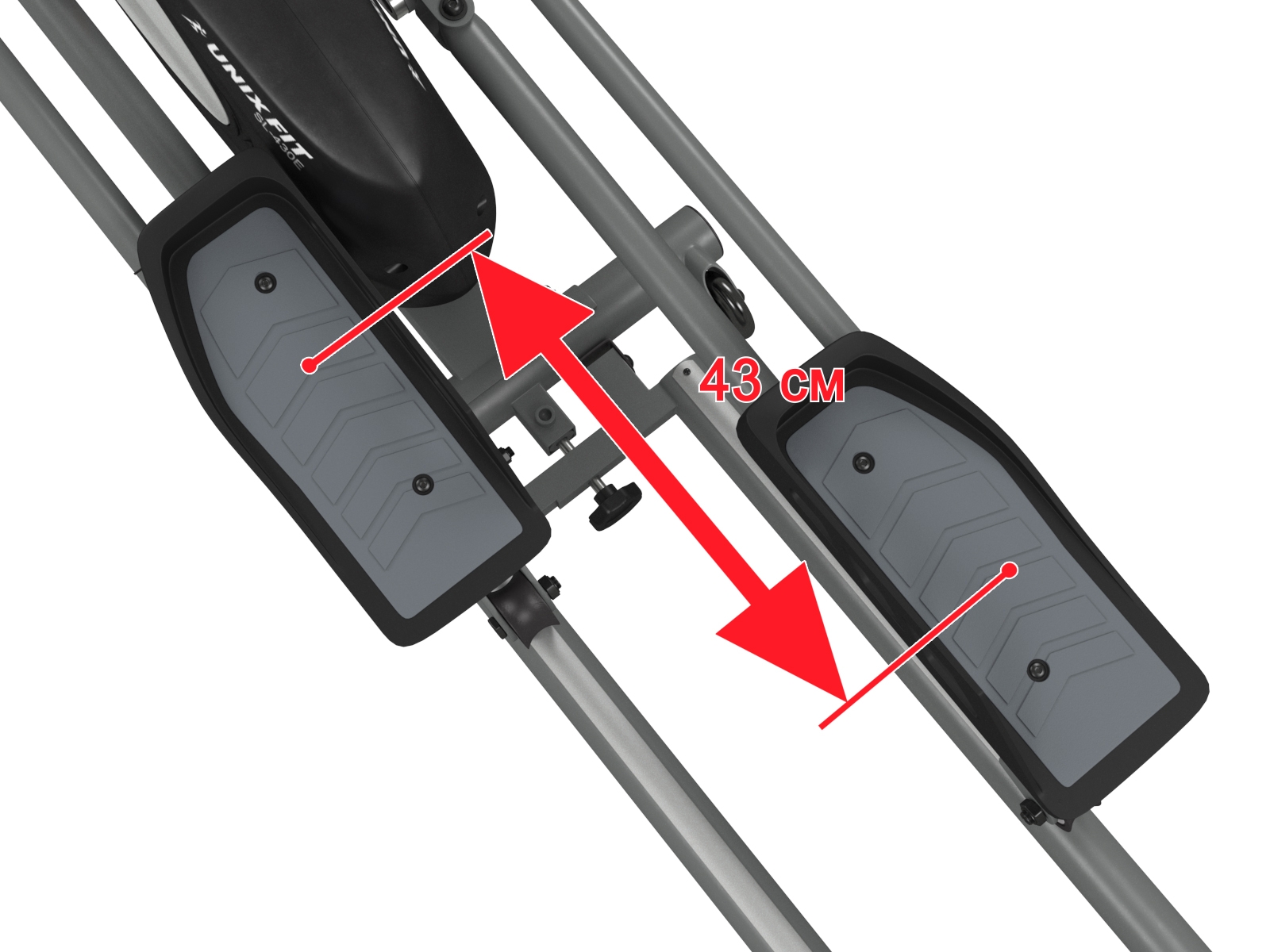 Магнитный эллиптический тренажер UNIXFIT SL-430 обладает усиленным трехкомпонентным педальным узлом и мощной рамой. Длина шага данной модели составляет 43 сантиметра, а расстояние между педалями (Q фактор) составляет всего 19 сантиметров.