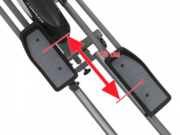 Электромагнитный эллиптический тренажер UNIXFIT SL-430 обладает усиленным трехкомпонентным педальным узлом и мощной рамой. Длина шага данной модели составляет 43 сантиметра, а расстояние между педалями (Q фактор) составляет всего 19 сантиметров.