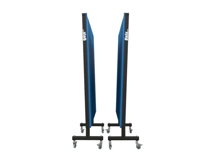 Металлическая рама столов UNIX line имеет толщину стали 1,7 мм, а благодаря ширине профиля опор 40х40 мм, стол очень устойчив, как на траве, так и на асфальте или тротуарной плитке. Также теннисный стол имеет 8 прорезиненных колес диаметром 75 мм с подшипниками. Колеса оборудованы фиксаторами и обладают высокой износостойкостью.