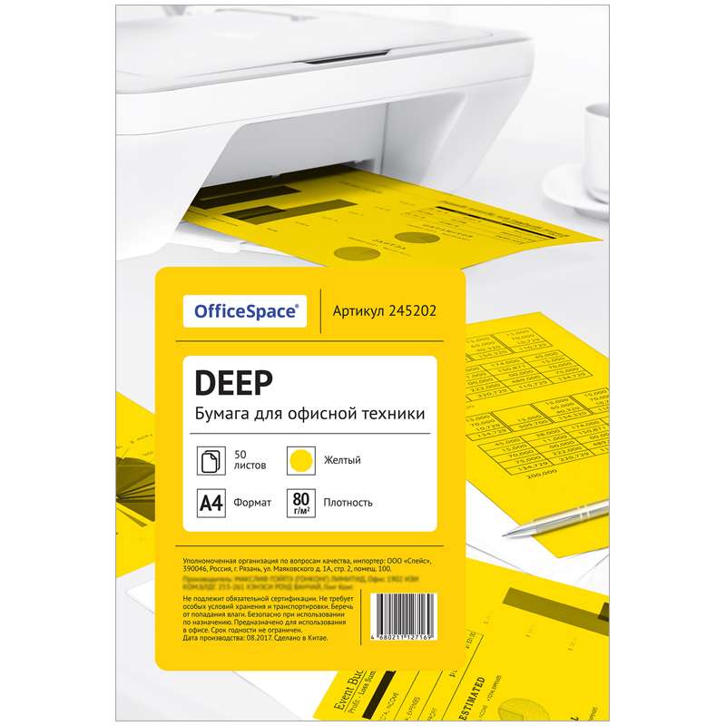 Главная / Товары / КАНЦТОВАРЫ / УПАКОВКА / ХОЗ ТОВАРЫ / РАСХОДНЫЕ МАТЕРИАЛЫ / Бумага и бумажная продукция / Бумага форматная / Бумага форматная цветная / Бумага цветная OfficeSpace deep А4, 80г/м2, 50л. (желтый)