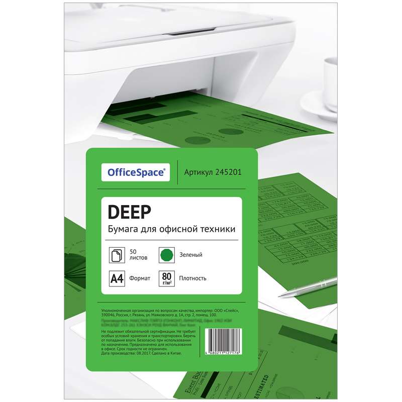 Главная / Товары / КАНЦТОВАРЫ / УПАКОВКА / ХОЗ ТОВАРЫ / РАСХОДНЫЕ МАТЕРИАЛЫ / Бумага и бумажная продукция / Бумага форматная / Бумага форматная цветная / Бумага цветная OfficeSpace deep А4, 80г/м2, 50л. (зеленый)