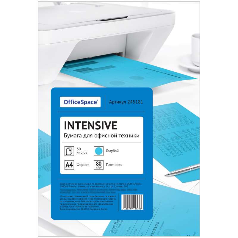 Главная / Товары / КАНЦТОВАРЫ / УПАКОВКА / ХОЗ ТОВАРЫ / РАСХОДНЫЕ МАТЕРИАЛЫ / Бумага и бумажная продукция / Бумага форматная / Бумага форматная цветная / Бумага цветная OfficeSpace intensive А4, 80г/м2, 50л. (голубой)