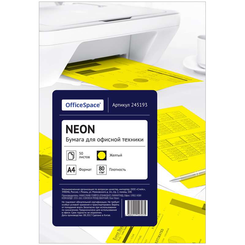 Главная / Товары / КАНЦТОВАРЫ / УПАКОВКА / ХОЗ ТОВАРЫ / РАСХОДНЫЕ МАТЕРИАЛЫ / Бумага и бумажная продукция / Бумага форматная / Бумага форматная цветная / Бумага цветная OfficeSpace neon А4, 80г/м2, 50л. (желтый)