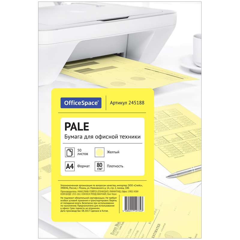 Главная / Товары / КАНЦТОВАРЫ / УПАКОВКА / ХОЗ ТОВАРЫ / РАСХОДНЫЕ МАТЕРИАЛЫ / Бумага и бумажная продукция / Бумага форматная / Бумага форматная цветная / Бумага цветная OfficeSpace pale А4, 80г/м2, 50л. (желтый)