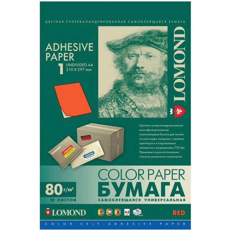 Универсальная многофункциональная самоклеящаяся бумага разработана для печати на всех видах струйных, лазерных принтеров и копировальных аппаратов с разрешением 720 dpi.Бумага самоклеящаяся А4 50л. красн. Lomond, неделёная, 80г/м2