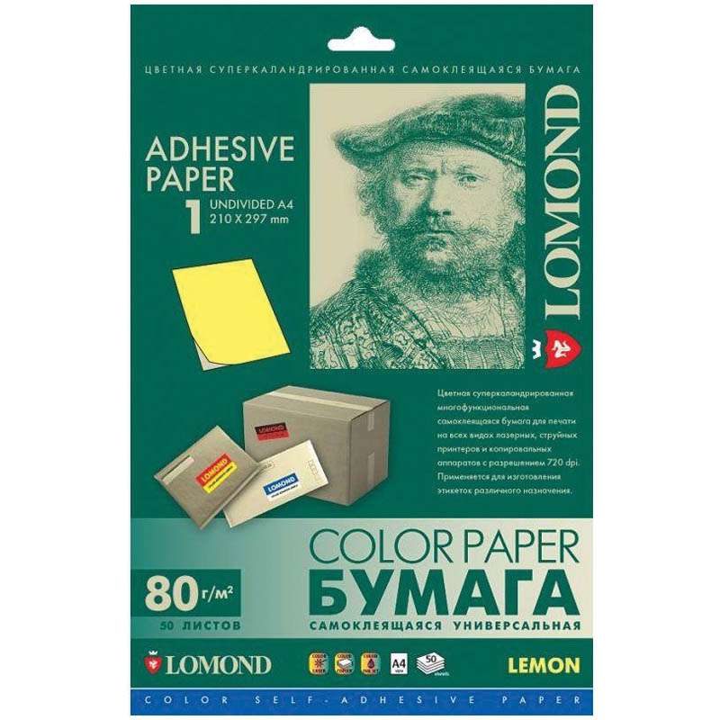 Универсальная многофункциональная самоклеящаяся бумага разработана для печати на всех видах струйных, лазерных принтеров и копировальных аппаратов с разрешением 720 dpi.Бумага самоклеящаяся А4 50л. лимонно-желт. Lomond, неделёная, 80г/м2