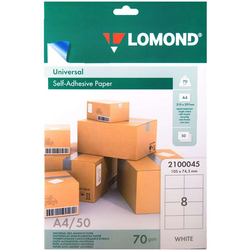 Бумага самоклеящаяся А4 50л. Lomond 08 фр.(105*74,3), 70г/м2