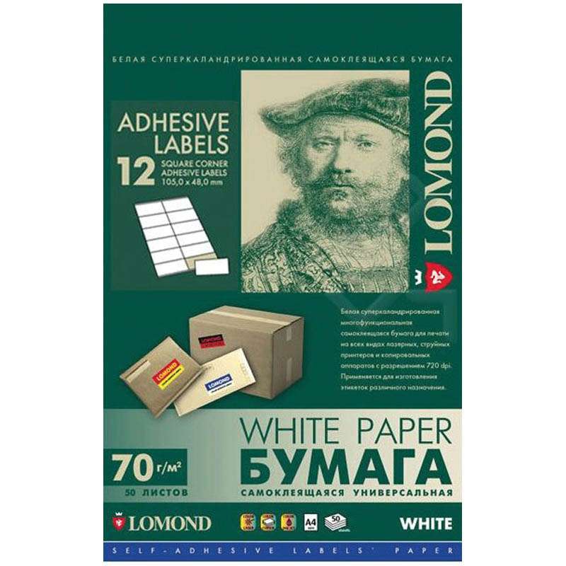 Бумага самоклеящаяся А4 50л. Lomond 12 фр.(105*48), 70г/м2