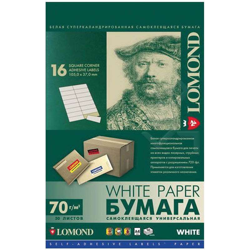 Бумага самоклеящаяся А4 50л. Lomond 16 фр.(105*37), 70г/м2