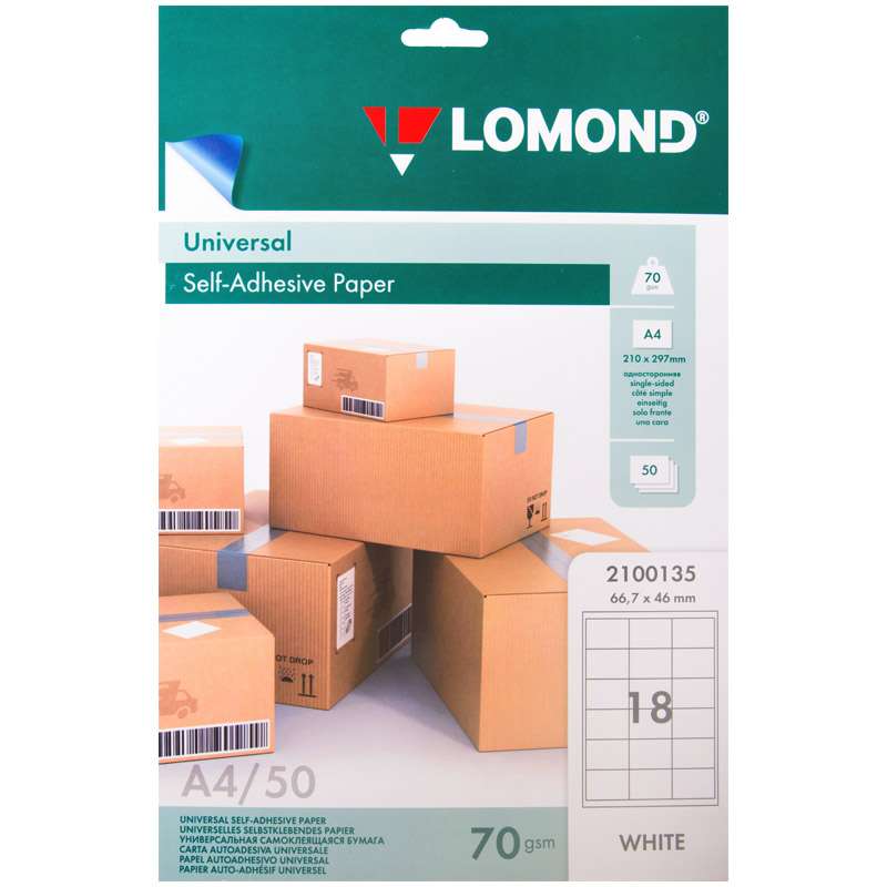Бумага самоклеящаяся А4 50л. Lomond 18 фр.(66,7*46), 70г/м2