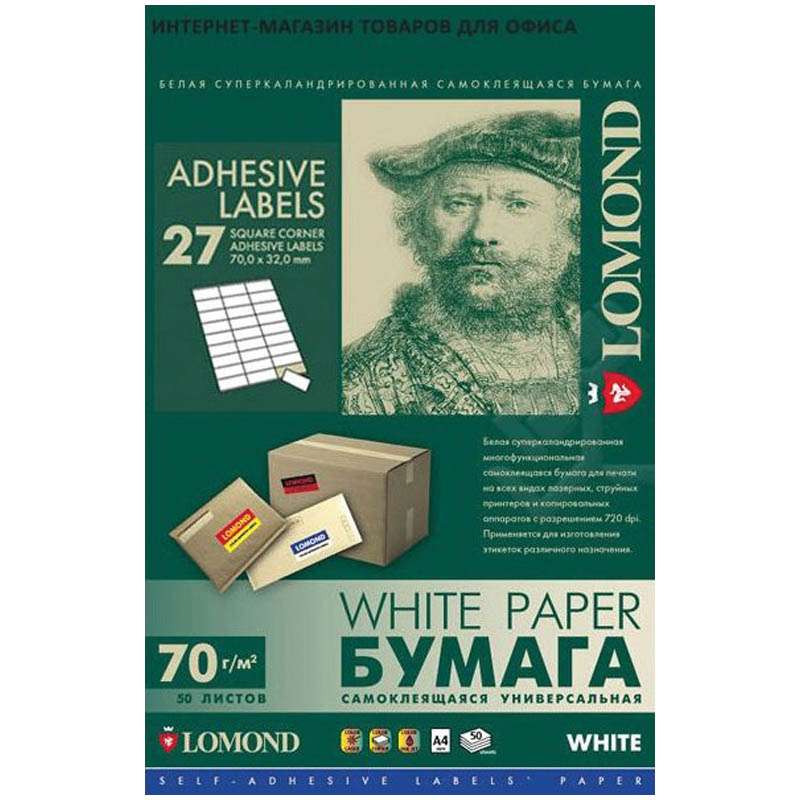 Бумага самоклеящаяся А4 50л. Lomond 27 фр. (70*32), 70г/м2