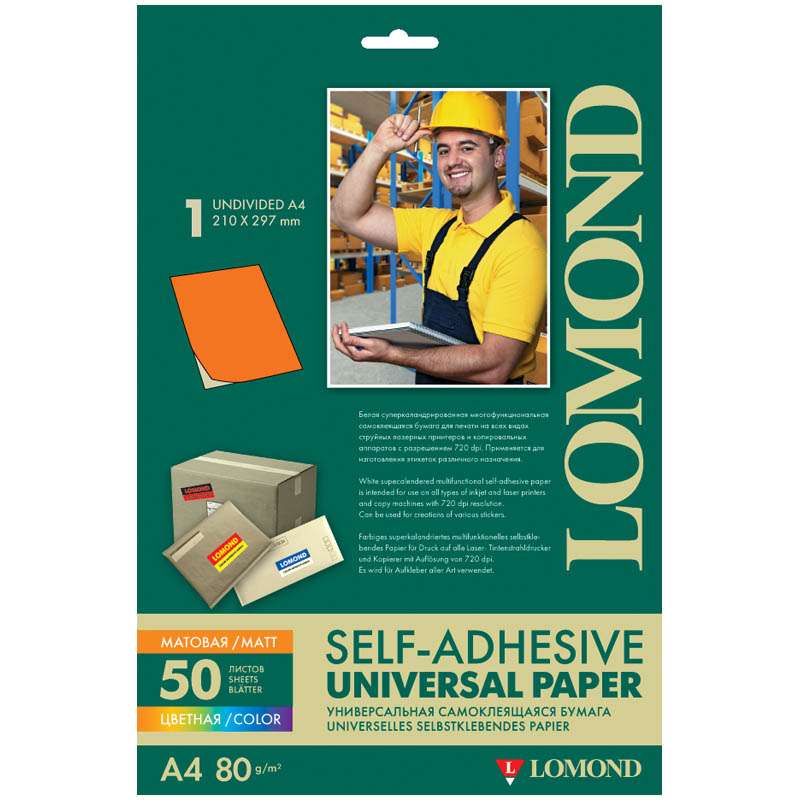 Универсальная многофункциональная самоклеящаяся бумага разработана для печати на всех видах струйных, лазерных принтеров и копировальных аппаратов с разрешением 720 dpi.Бумага самоклеящаяся А4 50л. неон. оранж. Lomond, неделёная, 80г/м2