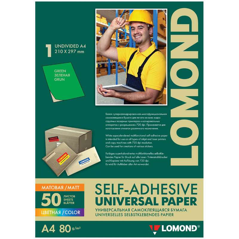 Универсальная многофункциональная самоклеящаяся бумага разработана для печати на всех видах струйных, лазерных принтеров и копировальных аппаратов с разрешением 720 dpi.Бумага самоклеящаяся А4 50л. зелен. Lomond, неделёная, 80г/м2