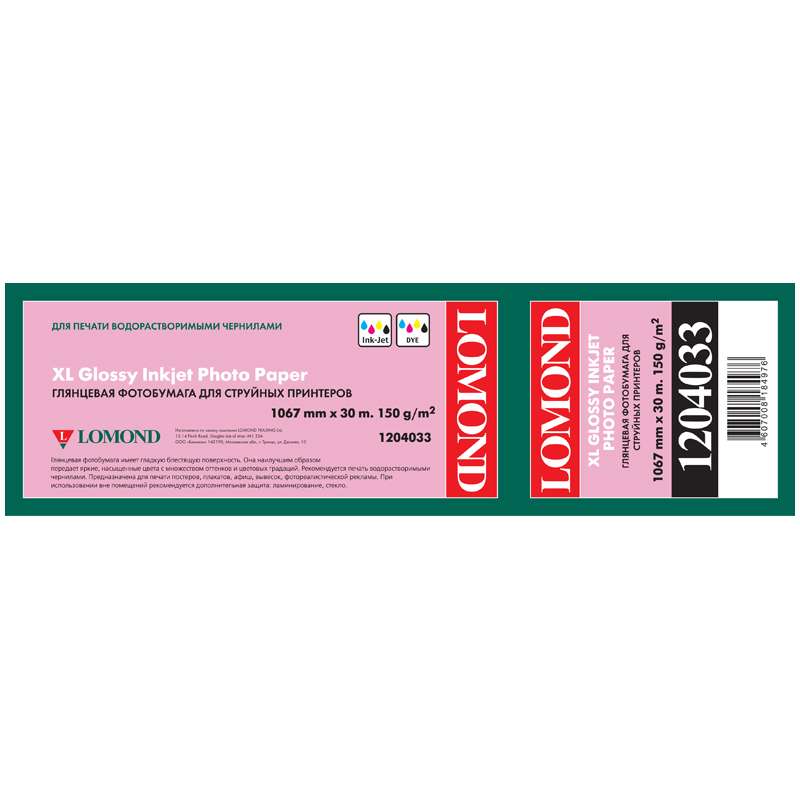 Глянцевая бумага, мелованная по методу «Кромкот», средней плотности. Предназначена для печати проспектов, плакатов и афиш, иллюстрированных фотоизображениями. Обеспечивает высокое разрешение, четкость и прекрасную цветопередачу.Бумага для плоттера глянцевая Lomond, 1067мм*30м, 150г/м2, вт. 50,8 мм