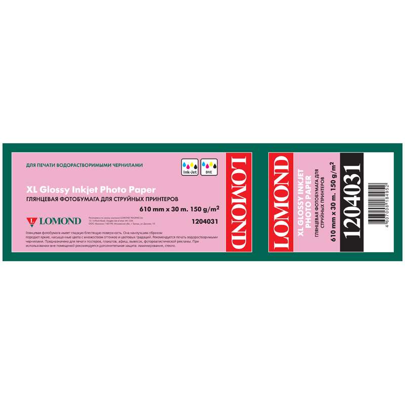 Глянцевая бумага, мелованная по методу «Кромкот», средней плотности. Предназначена для печати проспектов, плакатов и афиш, иллюстрированных фотоизображениями. Обеспечивает высокое разрешение, четкость и прекрасную цветопередачу. Глянцевая бумага для печати водорастворимыми чернилами с разрешением до 2880 dpi. Обеспечивает быстрое впитывание и высыхание.Бумага для плоттера глянцевая Lomond, 610мм*30м, 150г/м2, вт. 50,8 мм