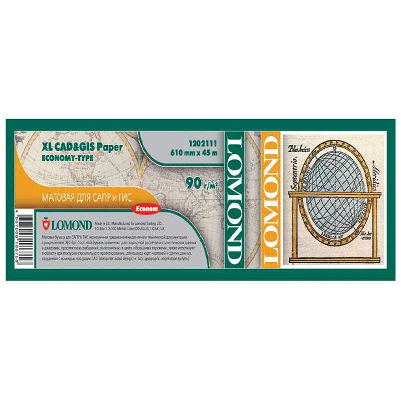 Бумага для плоттера матовая для САПР и ГИС (эконом) Lomond, 610мм*45м, 90г/м2, вт. 50,8 мм
