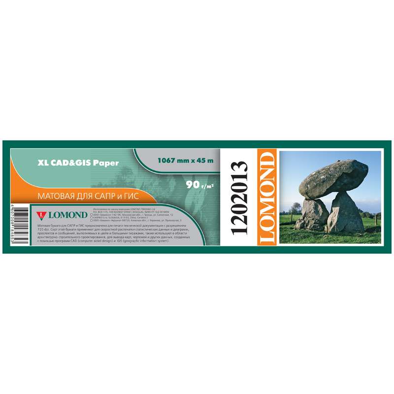Матовая бумага Lomond XL для САПР и ГИС предназначена для инженерно-технического использования. При разрешении 720 dpi она обеспечивает высокую четкость самых мелких деталей, хорошо подходит для скоростной печати. Матовая поверхность, лишенная бликов, способствует легкому восприятию мельчайших деталей отпечатанных чертежей, карт, графиков и т.п.Бумага для плоттера матовая для САПР и ГИС Lomond, 1067мм*45м, 90г/м2, вт. 50,8 мм
