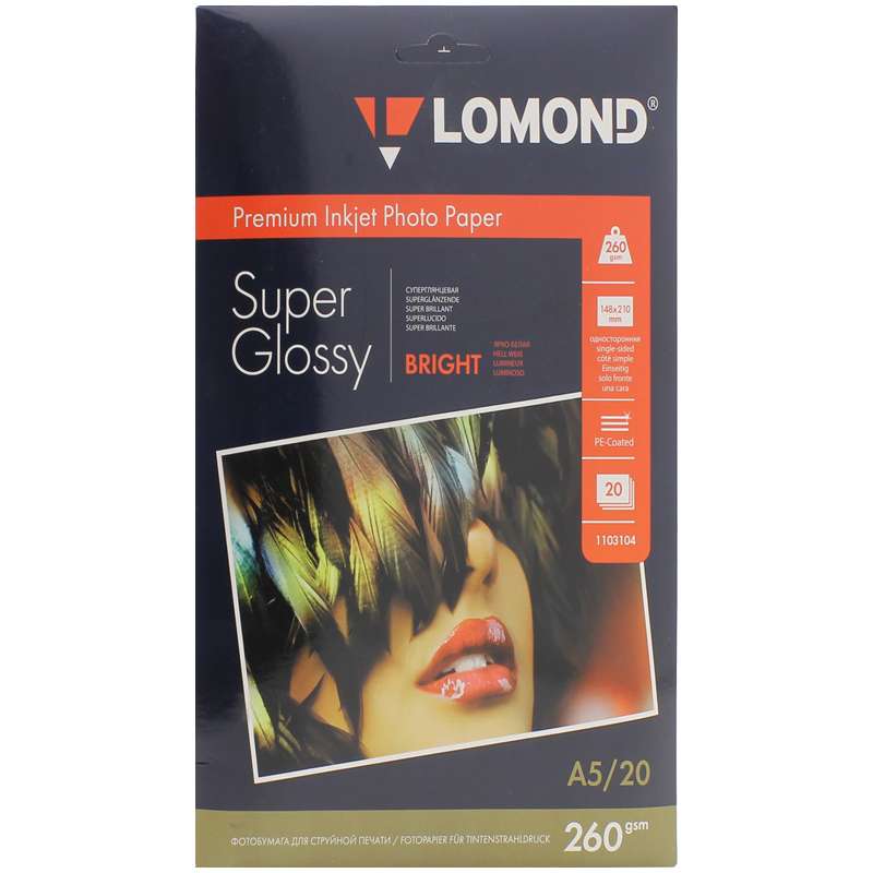 Микропористое покрытие обеспечивает столь же высокое качество печати, как и традиционная фотография. Отпечатки отличаются высоким глянцем. Благодаря полиэстеровому покрытию бумажной основы бумага Lomond Premium Photo совершенно не подвержена короблению после прохода через принтер даже при самой интенсивной «заливке» чернилами. Бумага предназначена для струйной печати. Идеальна в использовании с водорастворимыми и пигментными чернилами. Максимальное разрешение печати 5760 dpi.Бумага А5 (210*148) для стр. принтеров Lomond, 260г/м2 (20л.) супергл.