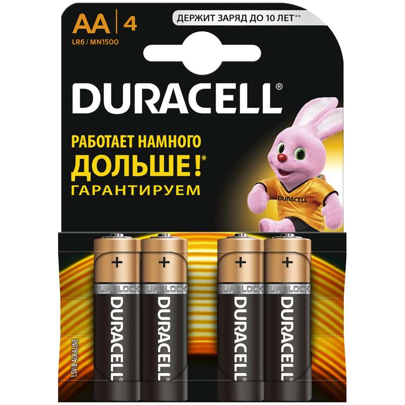 Батарейки для продуктов с низким и средним потреблением энергии. Продукт Duracell® – один из лучших на рынке щелочных элементов питания по продолжительности использования и соотношению цены и качества. Работают до 10 раз дольше, чем обычные солевые батарейки. Надежный источник энергии на каждый день. Работает дольше, намного дольше!* *по сравнению с обычными солевыми батарейками . Цена указана за одну батарейкуБатарейка Duracell Basic AA (LR06) 4BL