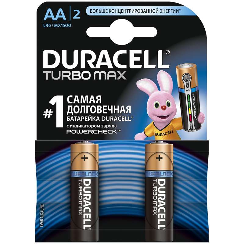 Duracell® Turbo Max является одной из наиболее мощных щелочных (алкалиновых) батареек среди представленных сегодня на рынке. При разработке Duracell® Turbo Max были полностью учтены потребности современной техники, требующей высокой моментальной энергоотдачи: от фотоаппаратов и камер до плееров и электронных игр. Duracell® Turbo Max работает до 40% дольше по сравнению с недорогими щелочными батарейками в цифровых камерах (результат зависит от типа устройства). Идеально подходит для: Игрушки, Цифровые фотоаппараты, Фотоаппараты со вспышкой, Плееры, Аудиооборудование, Радиостанции и т.д. Цена указана за одну батарейкуБатарейка Duracell Turbo Max AA (LR06) 2BL