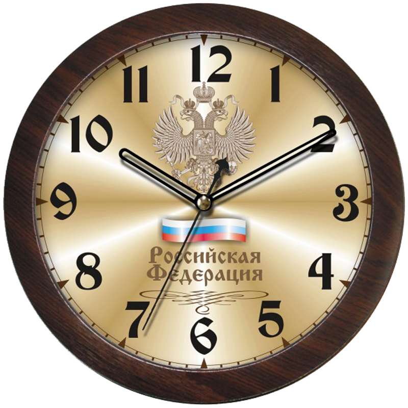 Главная / Товары / КАНЦТОВАРЫ / УПАКОВКА / ХОЗ ТОВАРЫ / РАСХОДНЫЕ МАТЕРИАЛЫ / Бытовая техника / Часы / Часы настенные ход плавный, интерьерные Камелия "Герб", круглые, 29*29*3,5, коричневая рамка