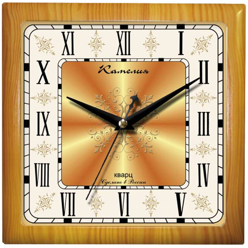 Часы настенные интерьерные. Корпус-пластик + ободок с покрытием, стекло - 3 мм. Работают от 1 элемента питания типа АА (в комплект не входит)Часы настенные ход плавный, интерьерные Камелия "Римские новые 2", квадрат, 29*29*3,5, св-кор. рамка
