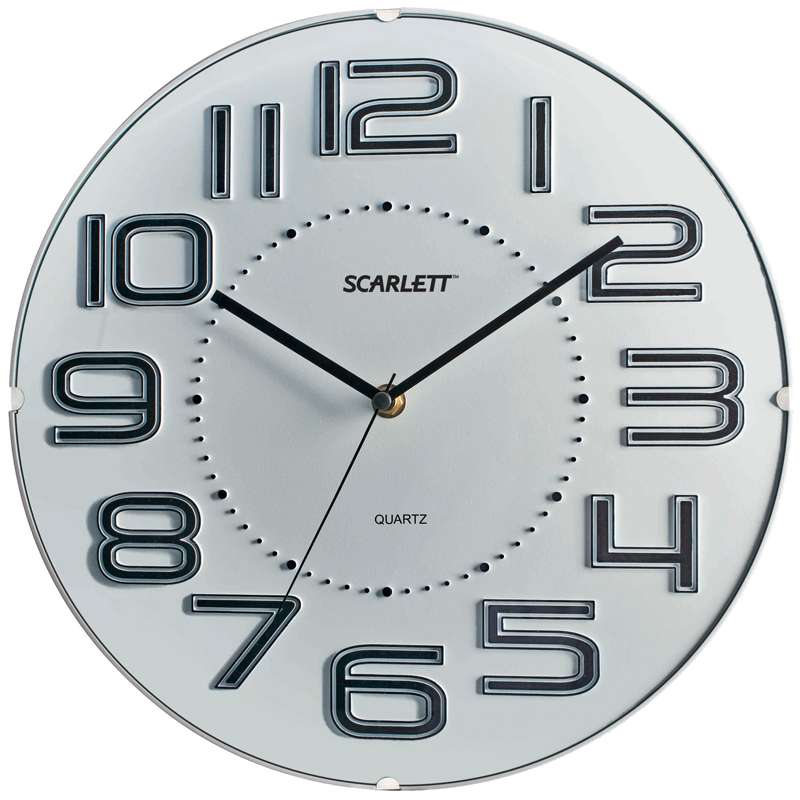 Плавный ход секундной стрелки. Материал корпуса - пластик. Цвет корпуса - белый. Цвет циферблата - белый. Выпуклое стекло. Элемент питания: тип АА 1.5V. Период работы от одного элемента: 12 месяцев. Относительная влажность помещения от 30% до 80%. Температура: от 1°С до 45°С. Размер: D 32.0 смЧасы настенные ход плавный, офисные Scarlett SC-55O, круглые, 32*32*5,1, белая рамка