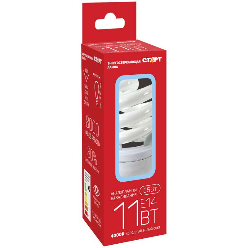 Лампа энергосберегающая Старт E 11W, SPC E14, 4000K 8Y, холодный свет