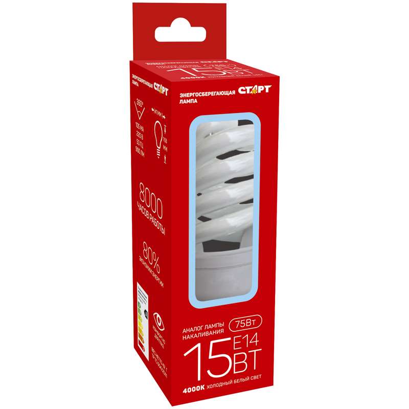 Лампа энергосберегающая Старт E 15W, SPC E14, 4000K 8Y, холодный свет