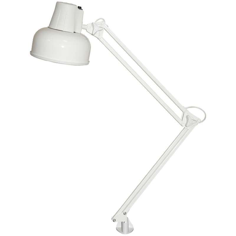 Светильник БЕТА с лампой накаливания мощностью 60Вт, цоколем Е27 для создания местного и комбинированного освещения на учебных и рабочих местах, в местах чтения и отдыха и т.д. Конструкция светильников допускает установку плафона во всех плоскостях. Возможна комплектация с подставкой, поставляемой как отдельное изделие.Светильник на струбцине Трансвит Бета, белый