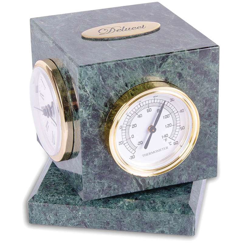Куб вращающийся Delucci с часами, термометром, гигрометром, зеленый мрамор