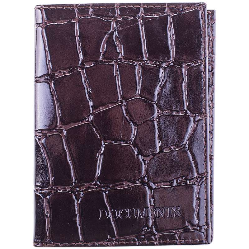 Обложка для автодокументов Материал - натуральная кожа Материал клапана - ПВХ Материал блока - ПВХ Цвет - коричневый Упаковка - пакет с европодвесом Противокражная защита - даОбложка для автодокументов OfficeSpace кожа тип 2, темно-коричневый, "Croc"