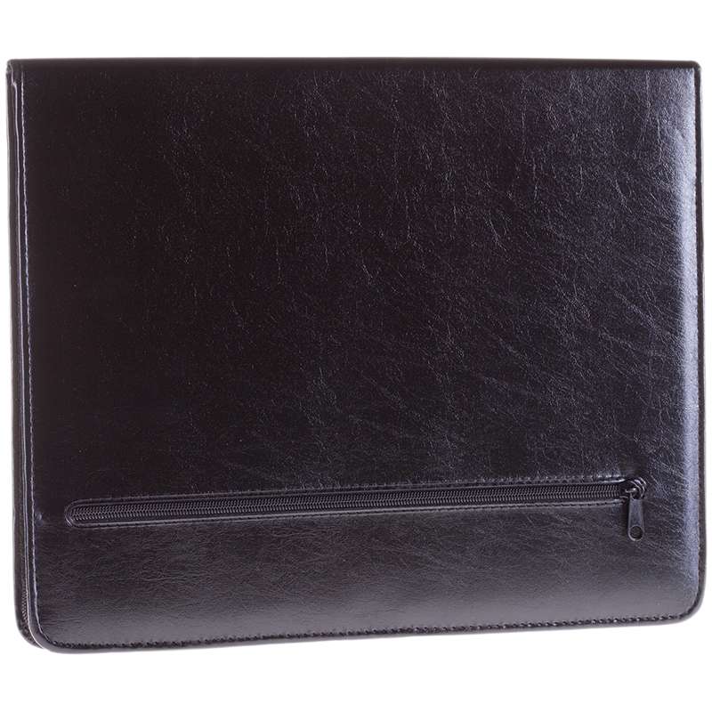 Деловая папка для документов формата А4 из искусственной кожи. Папка создана в лаконичном дизайне без ручек, закрывается на молнию. Внутри отделение для документов формата А4, отделения для визиток, крепление для ручки, блокнот формата А4 в комплекте. Внешний карман на молнии. Размер 360х280мм.Папка деловая OfficeSpace "Vesta" имп. кожзам, на молнии, блокнот