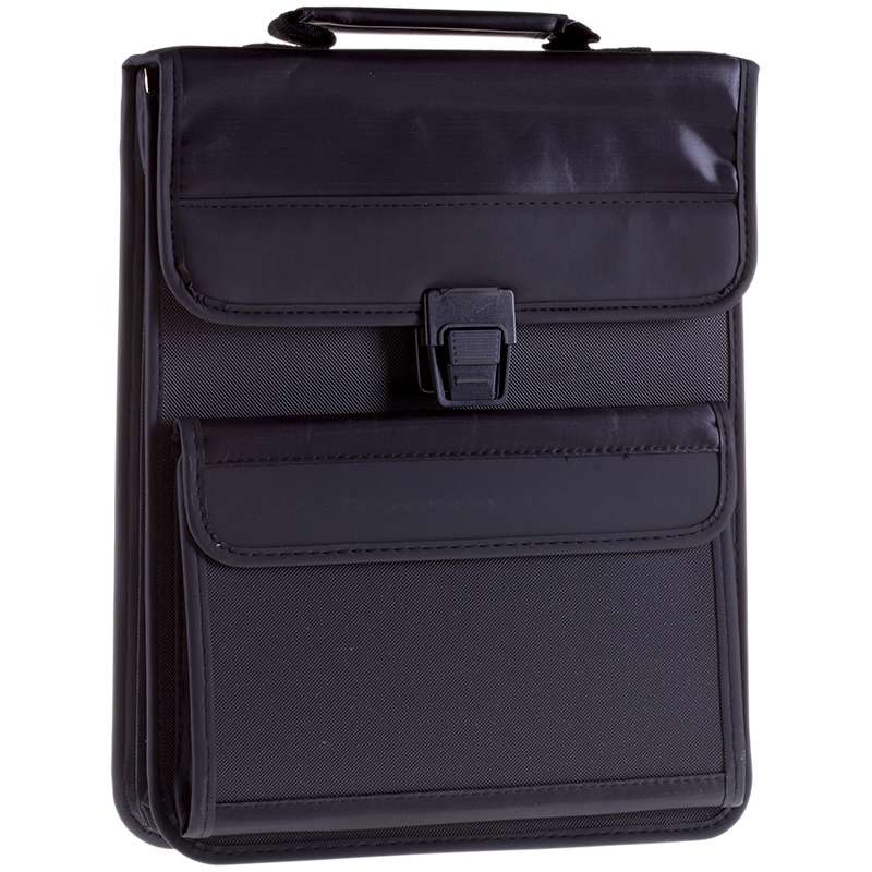 Вертикальный портфель для документов с 2 отделениями, центральный карман-разделитель на молнии, дополнительные карманы-держатели внутри: 3 отделения для ручек, 2 отделения для визиток и одно для сотового телефона, отстегивающийся ремень.Сумка деловая Berlingo "Office Soft" полиэстер, черный, 2 отделения, защелк. клапан, с ремнем