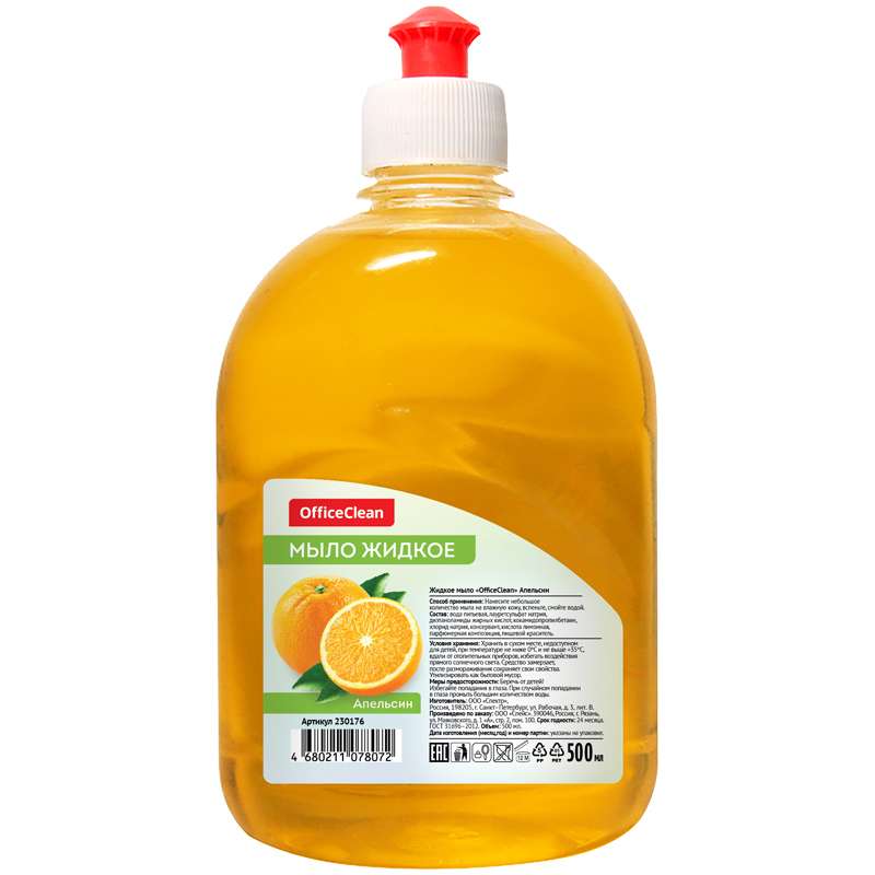 Главная / Товары / КАНЦТОВАРЫ / УПАКОВКА / ХОЗ ТОВАРЫ / РАСХОДНЫЕ МАТЕРИАЛЫ / Хозяйственные товары / Бытовая химия / Мыло / Мыло жидкое OfficeClean "Апельсин", пуш-пул, 0,5л