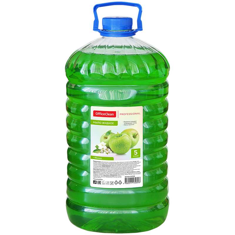 Жидкое крем мыло предназначено для мытья рук и тела. Экономичная упаковка 5л. Возможно использовать в детских и дошкольных учреждениях.Мыло жидкое OfficeClean "Professional. Яблоко" прозрачное, ПЭТ, 5л