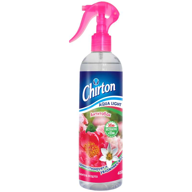 Освежитель воздуха водный CHIRTON Аква Лайт Антитабак, 400мл - ароматизирует и увлажняет воздух. Не содержит химических газов-пропеллентов. Химический состав:вода, пропиленгликоль, глицерин, изопропиловый спирт, менее 5% парфюмерная композиция, менее 5% консервант234633 Освежитель воздуха водный Chirton "Aqua light. Антитабак", 400мл [РЦ]