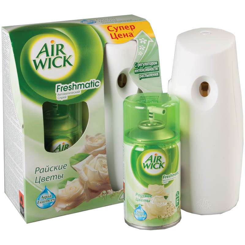 Главная / Товары / КАНЦТОВАРЫ / УПАКОВКА / ХОЗ ТОВАРЫ / РАСХОДНЫЕ МАТЕРИАЛЫ / Хозяйственные товары / Бытовая химия / Освежители воздуха / Комплект освежитель воздуха автоматич. и смен. блок Airwick "Райские цветы/Нежность шелка", 250мл