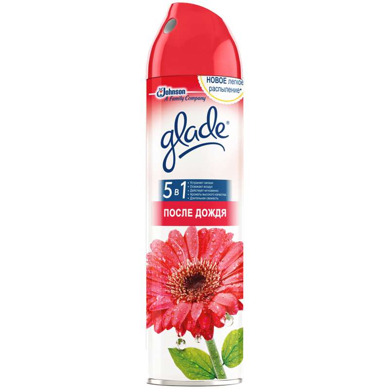 Аэрозоли Glade® — это серия освежителей воздуха, созданных на основе натуральных компонентов, которые легко устраняют неприятные запахи, оставляя тонкий и нежный аромат. Содержат высококачественные натуральные ароматизаторы. Быстро и эффективно устраняют неприятные запахи. Безопасны для окружающей среды и здоровья человека - не содержат хлорфторуглеродов Химический состав:вода (30% и более), пропан/бутан/изобутан (30% и более), парфюмерная композиция (5% и менее), сорбитанолеат (5% и менее), натрия нитрит (5% и менее)Освежитель воздуха аэрозольный Glade "После дождя", 300мл