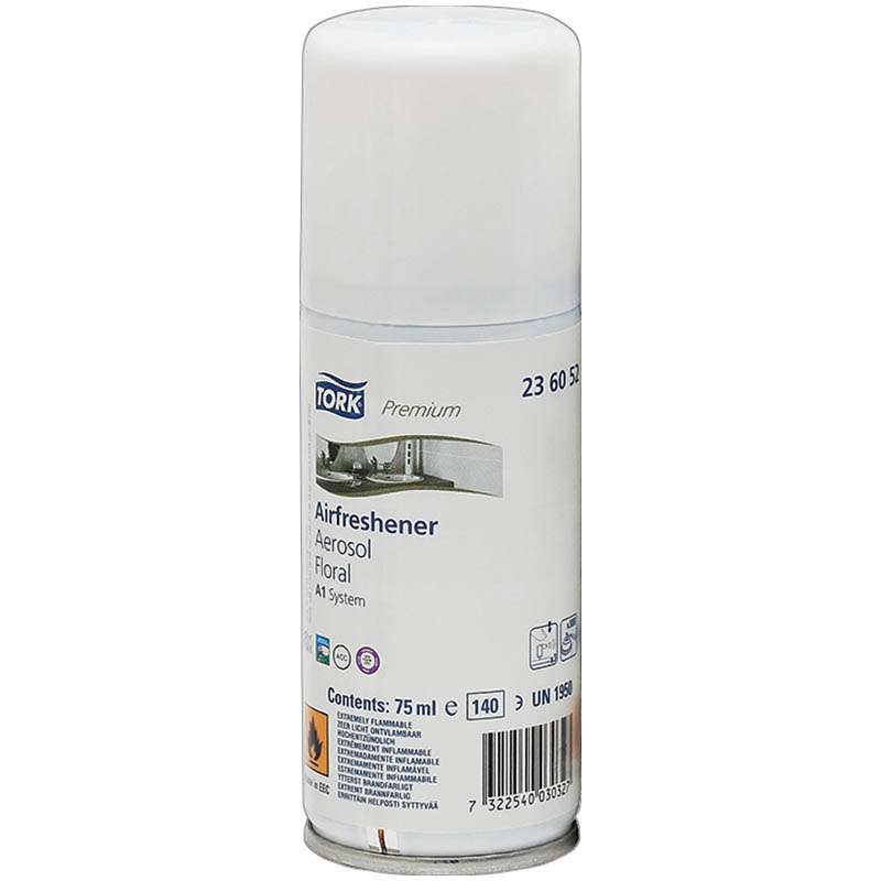 Эффективное микрораспыление, запасные сменные баллоны под систему А1 Tork артикул 562000, 256055. Химический состав:изобутан,пропан, этанол, дипропиленгликоль, линалилацетат, аллил капроат, газы, находящиеся под давлениемСменный баллон для освежителя воздуха Tork "Premium.Цветочный"(А1), 75мл
