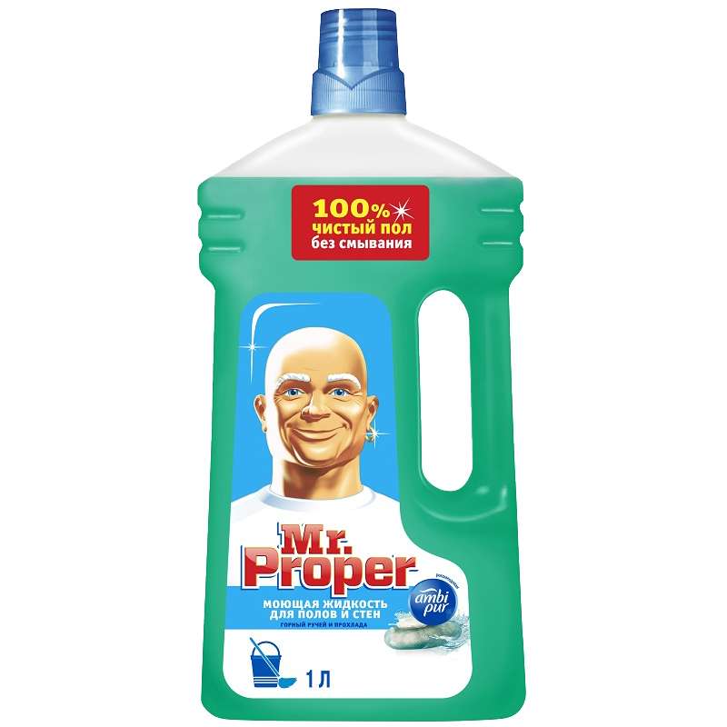 Главная / Товары / КАНЦТОВАРЫ / УПАКОВКА / ХОЗ ТОВАРЫ / РАСХОДНЫЕ МАТЕРИАЛЫ / Хозяйственные товары / Бытовая химия / Средство для мытья полов / Средство для мытья полов и стен Mr.Proper "Горный ручей и прохлада", 1л