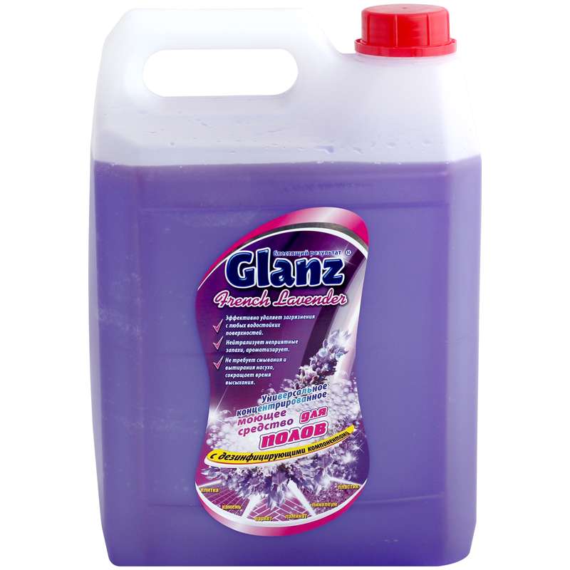 Главная / Товары / КАНЦТОВАРЫ / УПАКОВКА / ХОЗ ТОВАРЫ / РАСХОДНЫЕ МАТЕРИАЛЫ / Хозяйственные товары / Бытовая химия / Средство для мытья полов / Средство для мытья полов Glanz "Франзузская лаванда", канистра, 5л
