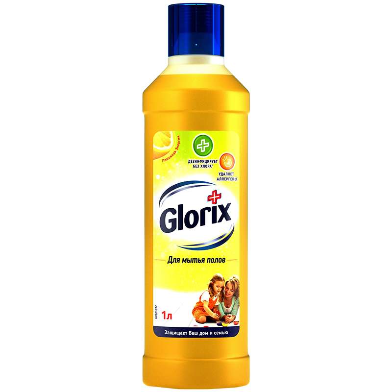 Чистящее средство для пола Glorix "Лимонная энергия" эффективно очищает и дезинфицирует поверхности без хлора. Уничтожает 99,99% болезнетворных бактерий, удаляет аллергены (пыль и пыльцу) и наполняет дом приятным ароматом. Разработано для мытья пола, также идеально подходит для ежедневного очищения других больших и малых поверхностей (рабочие поверхности, стол, стулья).Средство для мытья полов Glorix "Лимонная энергия",1л